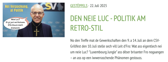 Besonnesch pikant: Dem neie Luc säin CSV-Parteikolleeg Laurent Mosar bezeechent dem Trump seng Taxepolitik als "Katastroph fir de Welthandel". Ma de neie Luc berouegt weider, a behaapt, d'Lëtzebuerger Ekonomie wär net betraff. Eng Rëtsch Leit froen sech: Haten s’op der Sorbonne en anere Wirtschaftscours wéi op der Harvard University? Oder lieft de Luc Frieden an enger Parallel-Welt, wou d'Chambre de Commerce just gutt ass fir Receptioune mat Schnittercher ze organiséieren?