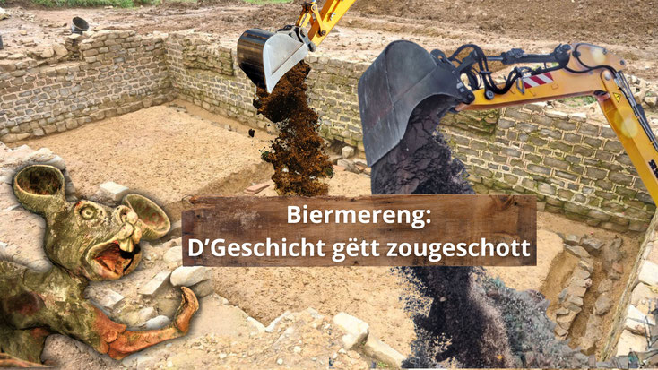 Ma zu Biermereng gëtt net nëmme gegruewen, neen. Et gëtt och direkt nees begruewen, zougeschott. Dat nennt sech "präventiv Archäologie" – d’Wëssenschaft vum Verhënneren. D’Konscht, d’Geschicht ze retten, fir se net retten ze mussen. Net d’Geschicht gëtt gerett, mee de Baustopp. D'Archéologie préventive: mir gruewen op, mir fotograféieren, mir triéieren an dokumentéieren – an da schëppen mer nees zou. D'Geschicht gëtt begruewen, well se stéiert. Schliesslech sollen op där Plaz 13 Haiser entstoen.